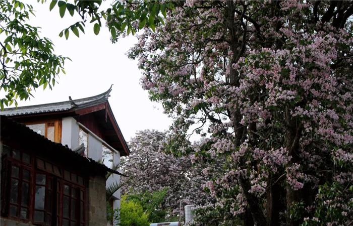 或许是因为丽江本就是一个花多的城市,又或者是因为楸树挺拔,高的无法让人近距离触摸,吉庆路的楸木花并没有引来过多人的驻足。但当你走在楸树下时,会不禁为它的美停留。