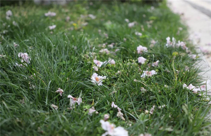 走进祥和领域首先映入眼帘的不是那一树树盛开的楸木,而是随风飘落下来的一朵朵楸木花。她们轻轻的落在了草地上,落在了灌木丛间,静静的躺着。花开花谢,皆自然的章法,而存在的每一刻都是永恒的美丽。