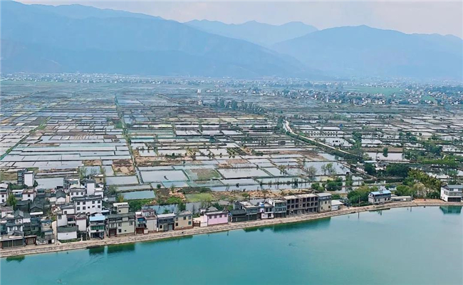 作为“鱼米之乡”,春季的永胜一派怡然的田园风貌。山林之间,梯田成片,瓦房周围,一汪碧湖,完全就是理想中世外桃源的既视感。