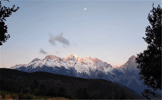 拥有完美的视角欣赏玉龙雪山,日照金山、日落映湖,这样的美景在这里并不足为奇。