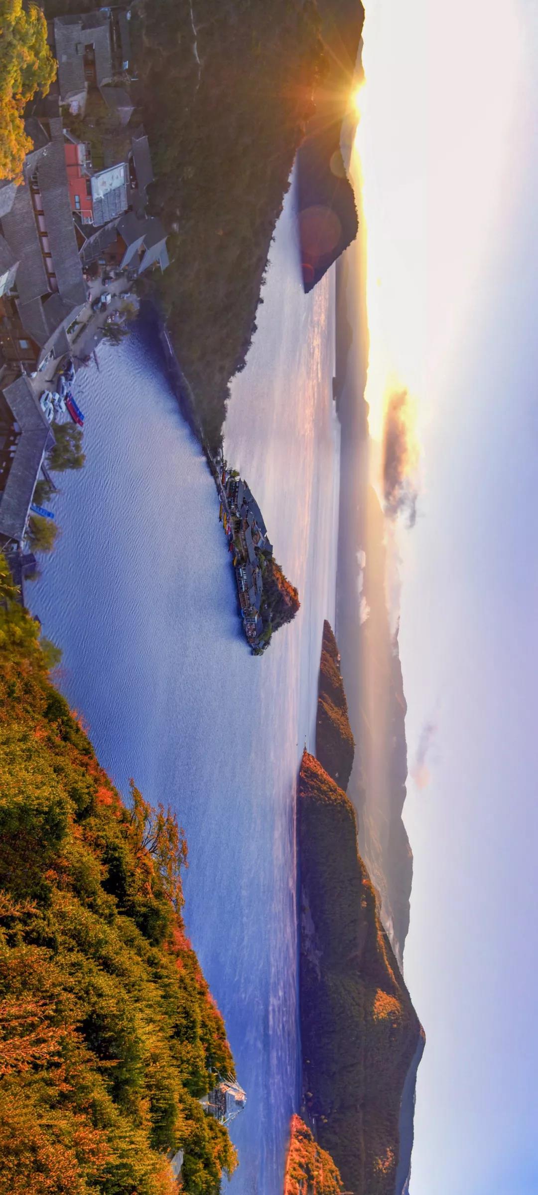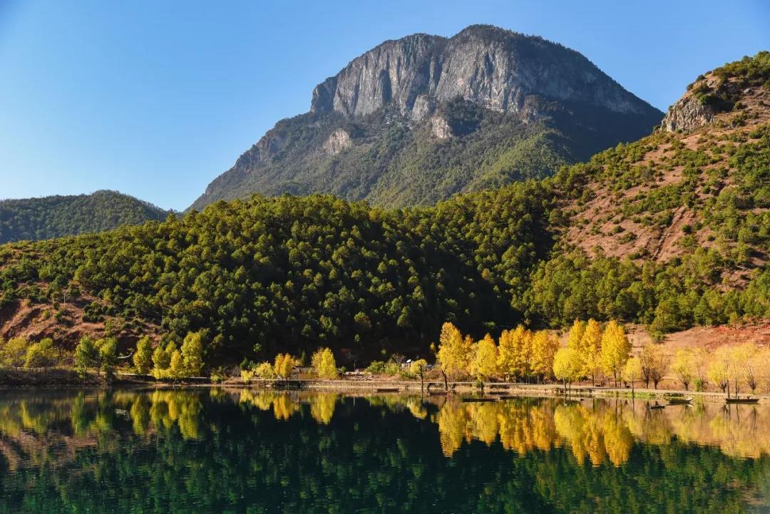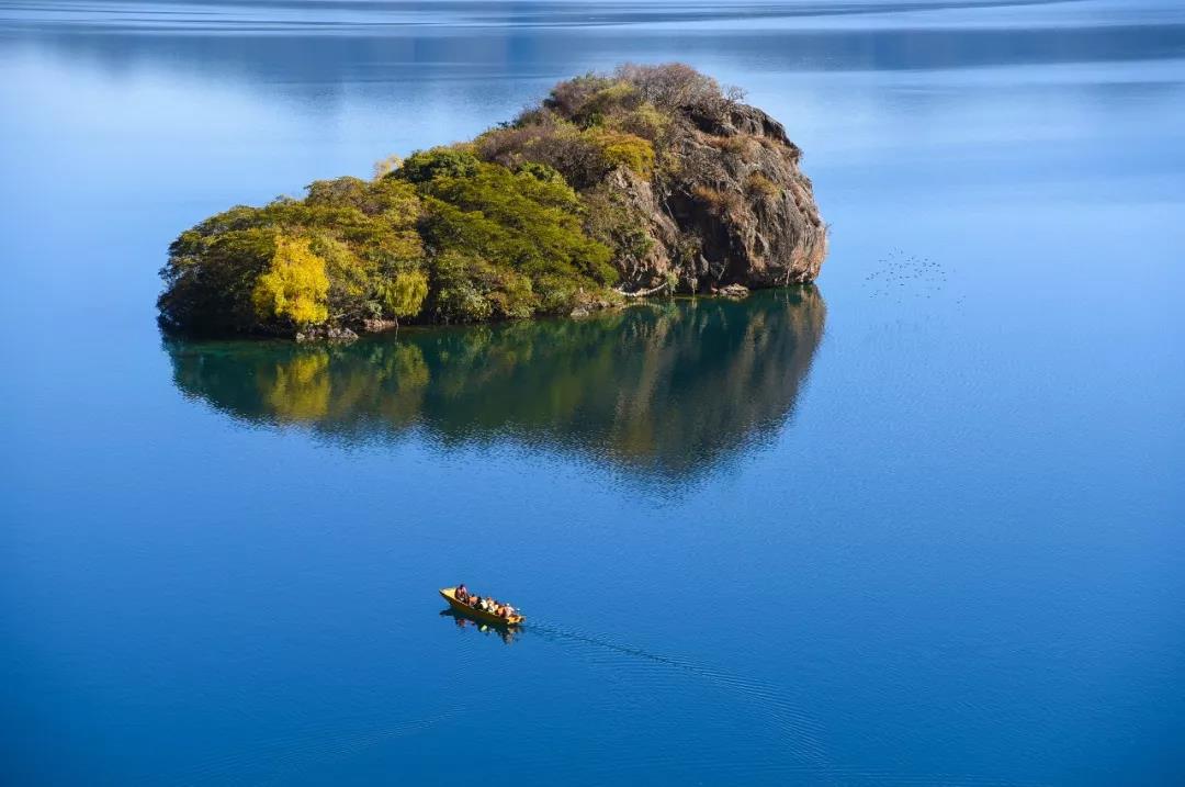 很难相信会有那样深邃的蓝,连万里无云的天空都为之汗颜。几座岛屿点缀在明镜般的湖面上,风儿吹过,拉起的缥缈不定的波纹,神女山端坐在对面,仅凝视一秒,就能知道,她有一个美丽的故事等待讲述。