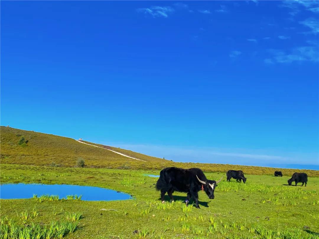 微风拂面,蓝天白云,青青草原,清澈湖泊,牛羊成群……在格拉丹,随处可见美轮美奂的画卷,在这样的美景面前,总会感觉照片不及眼睛看到的美。置身于此,把美景尽收眼底,吸收夹杂着泥土、花香、青草香味的空气,切身感受大自然的神奇与美,你会不禁感慨——“人间值得”。