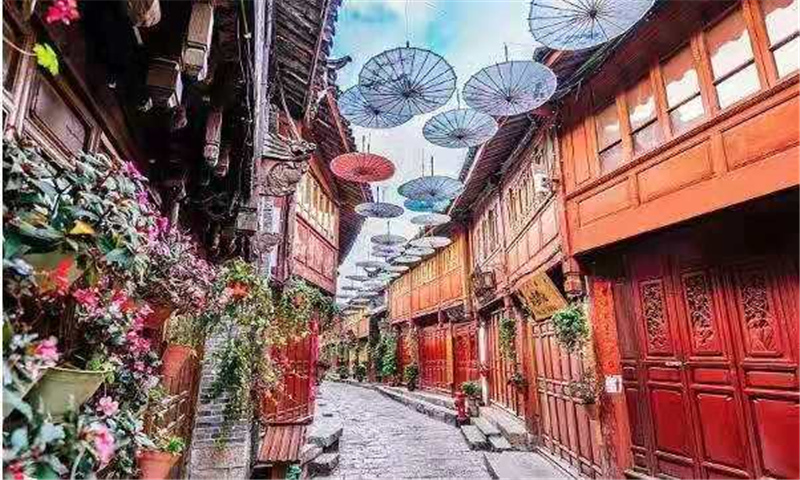丽江古城是茶马古道上有名的城镇之一,曾是这条道上的交易市场,十分繁荣。古城依山而建,街巷依水流而设,房屋鳞次栉比,站在街上便可看见遥远的玉龙雪山。