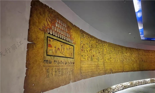 这里有东巴传奇——文化长廊展现的是以纳西族独有的民族文化(东巴文化)为设计依据,结合丽江当地独有的纳西建筑风格,通过图片、影像和文字的生动结合,涵盖纳西节庆、纳西婚俗、纳西建筑、纳西服装、纳西祭祀等内容。