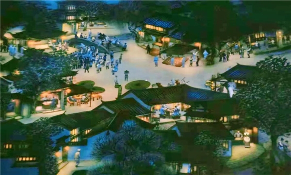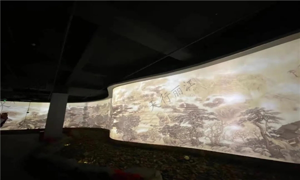 这里有亚洲第一百米纳西风情数字长卷,它作为纳西创世纪文化体验中心镇馆之宝的《纳西风情图》,全长100米,高3米,从雪山秘境、桃源白沙、茶马束河、署古黑龙潭、鼎盛大研、巍峨木府、大美拉市海七个板块来进行呈现。