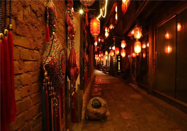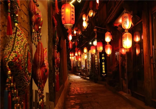 展现出另一种动人的景象犹如重庆的洪崖洞亦似宫崎骏动画世界里的城堡美到令人惊叫石路曲巷,庭院楼阁在灯光的点缀下古朴典雅中透出一丝神秘,比起白天的人声鼎沸夜晚的束河独有一种静谧之美多了些端庄、典雅和精致临窗窥探外界的大熊似乎藏了很多心里话,要对每一个路过的旅人倾诉深入。