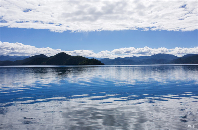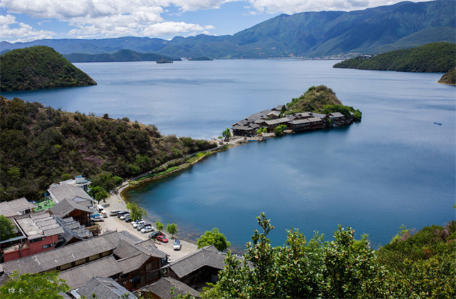 这里的远山依旧连绵不绝,矗立在这美丽的湖边成千上万年,见证着泸沽湖永恒的故事。从高处俯瞰整个泸沽湖,仿佛看到了大地的蓝宝石。蓝天、湛蓝的湖水、连绵的远山,是自然写下的壮阔而又秀美的诗句。