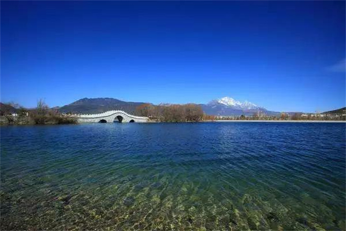 清溪水库:这是本地人超爱去打卡的景点。一年四季景不同,夏天就是最清爽的色彩,蓝天白云、碧水白桥、微风拂柳,还有那远方若隐若现的玉龙雪山,这也是摄影家镜头里最常出现的美景。