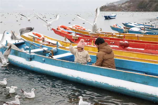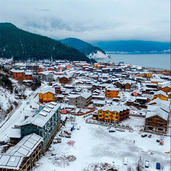 丽江团建好时节:泸沽湖下雪啦!快带上小伙伴一起来玩耍吧!