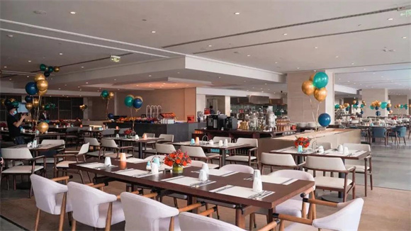 全日制餐厅提供元气早餐及各式环球美食。窗外是如画风景,眼前是厨师们的厨艺秀,还有精美的美食犒劳味蕾。