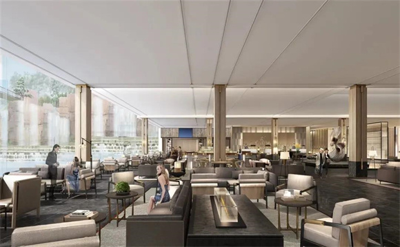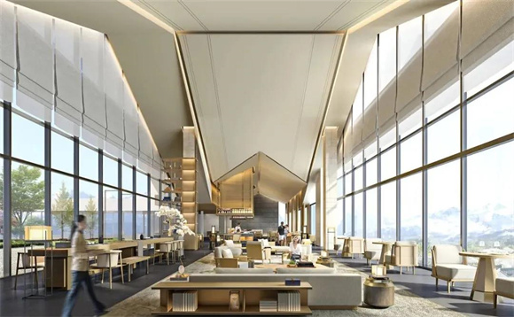 大堂吧位于酒店一层,可一览庭院瀑布景观,提供精选咖啡、各类饮品美味小吃。