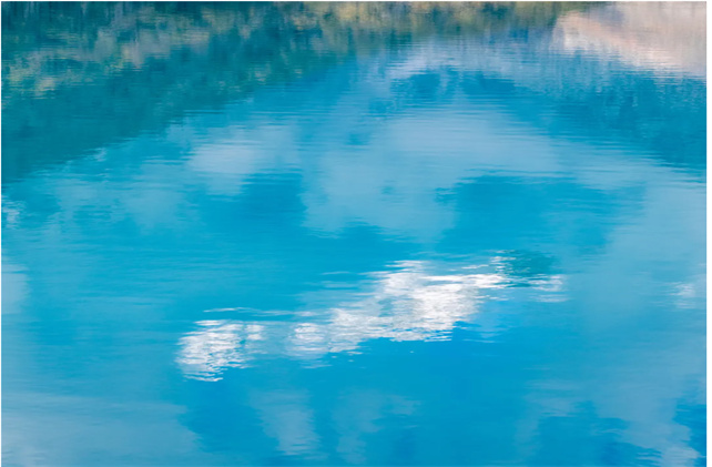 玉液、镜潭、蓝月和听涛,四湖环抱,蓝蓝的湖水,有着梦幻般的静美。