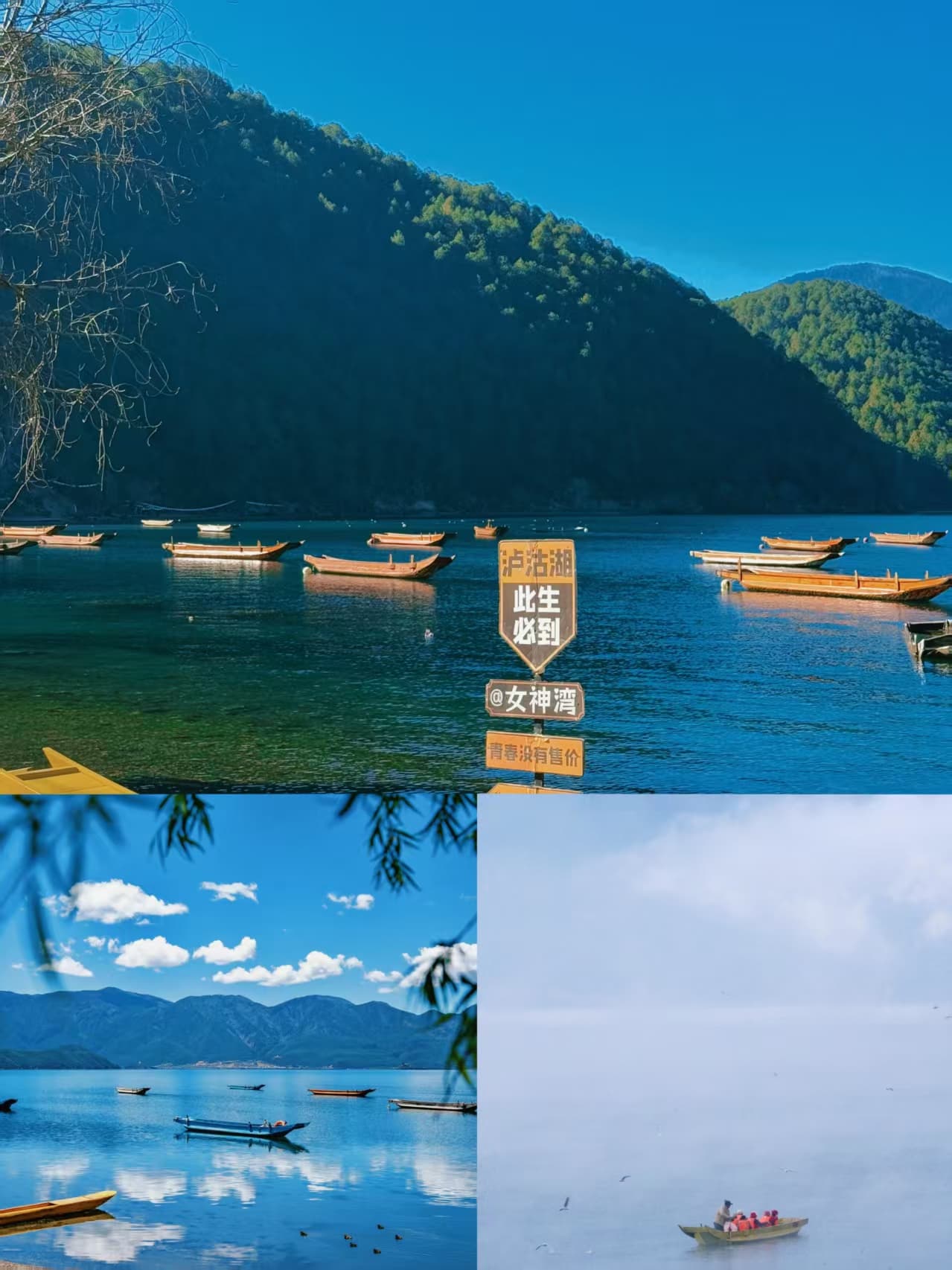 在川滇交界的群山怀抱中,藏着一颗被时光遗忘的蓝宝石——泸沽湖。这里没有都市的喧嚣,没有车流的催促,只有湖水轻漾的呢喃、山风拂过草海的私语,以及摩梭人传承千年的古老歌谣。它像一幅未干的水墨画,将自然的纯净与人文的温柔揉进每一寸光影里,等待旅人用脚步丈量,用心灵收藏。
