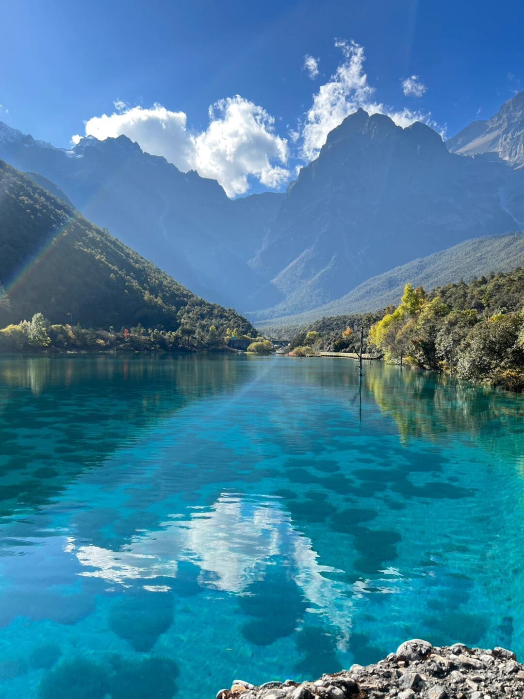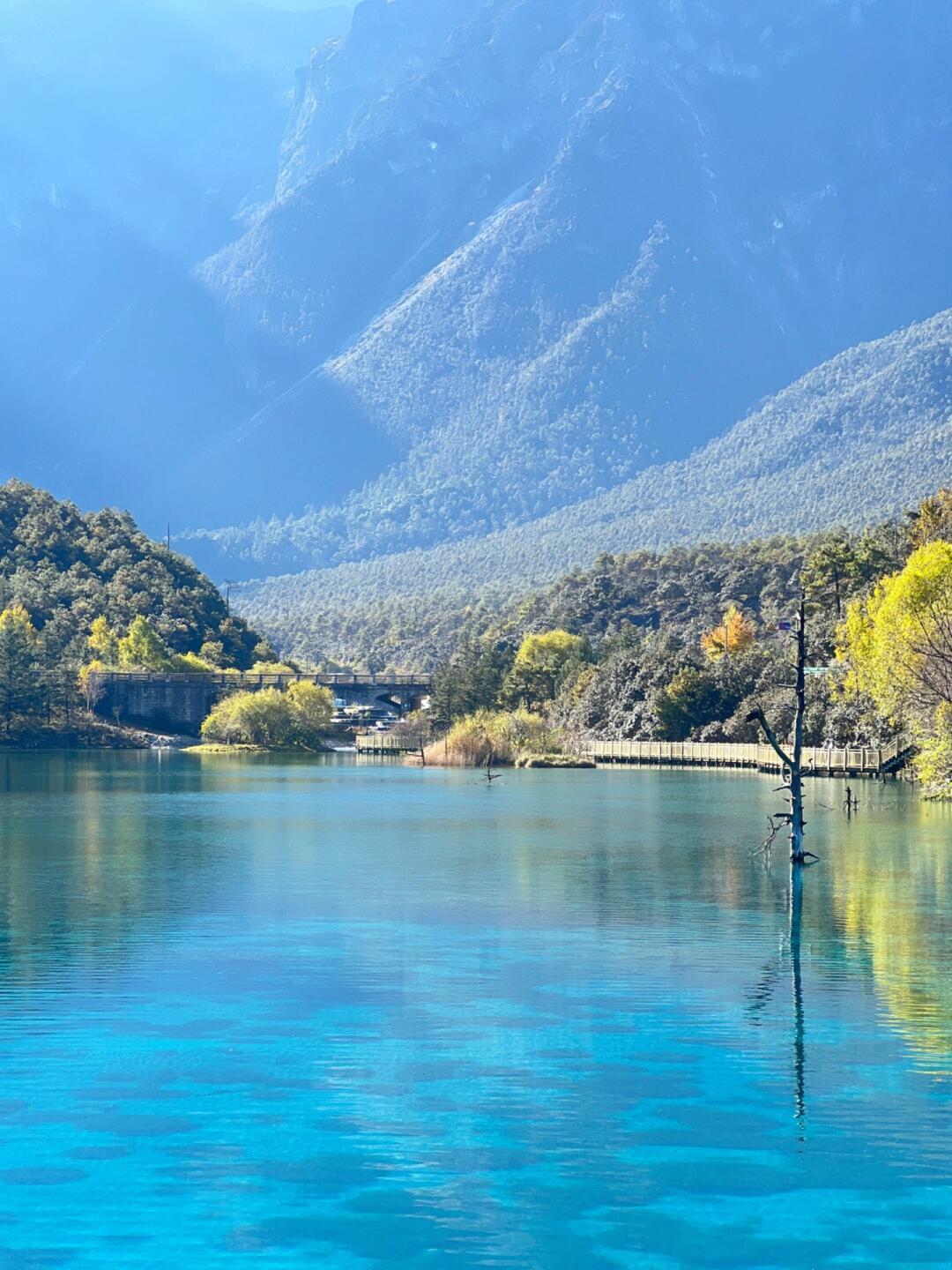 它不像洱海那般壮阔,也不似泸沽湖那般静谧深邃,却以变幻莫测的蓝,成为雪山脚下最动人的馈赠。