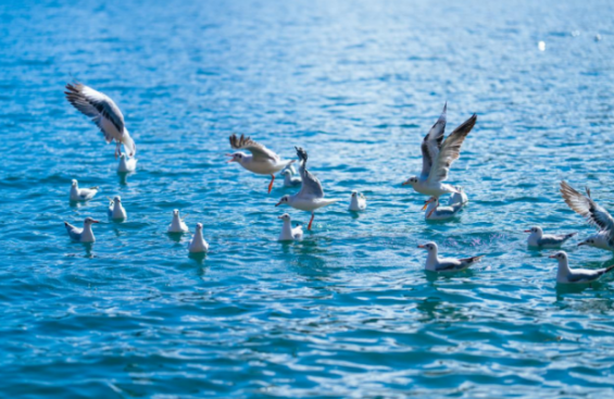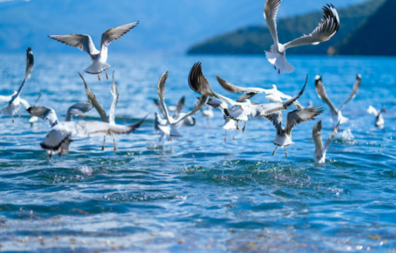 泸沽湖作为中国第三大深水湖泊,长年保持地表水I类标准,为红嘴鸥提供了优质的栖息环境和丰富的食物来源。近年来,市县两级始终坚持生态优先,持续推进沿湖生态搬迁、湖滨带修复、入湖河道治理及全湖截污治污工程。