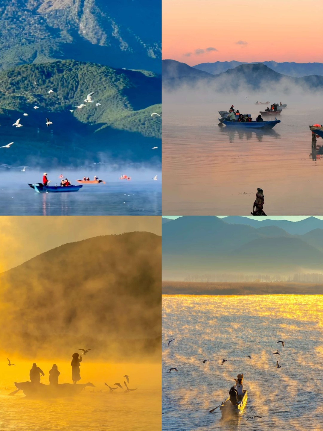 在如梦似幻的晨雾中醒来,乘坐传统的猪槽船,缓缓穿过如镜面般平滑的湖水。
