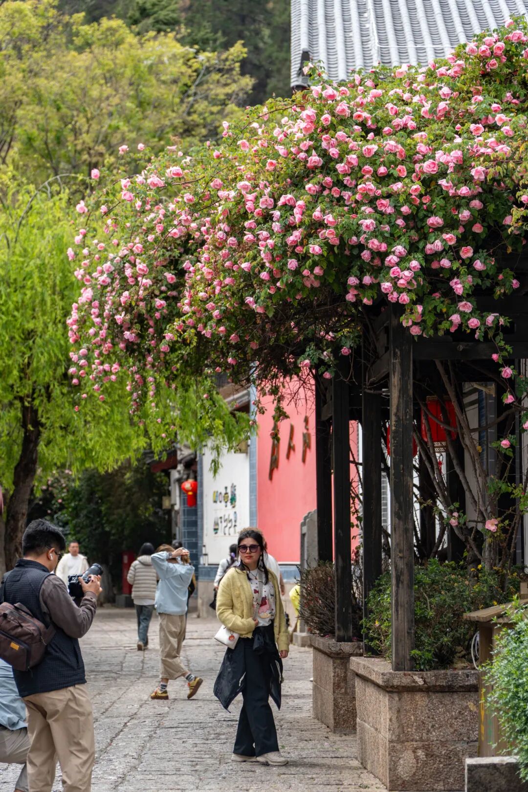 在丽江古城拍蔷薇,和别处最不一样的,是花与古城天生相融的氛围感。
