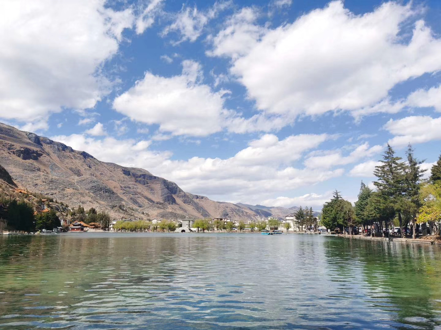 春天,草原的风已变得温和,伴着牛铃声响,最适合环着纳帕海骑行,背阴的山坡上尚有点点积雪,白色的浪花击打着湖岸,越冬的黑颈鹤正陆续飞离。水声鸟声汇集的旷野,更显出这湖与山与云的静默。
