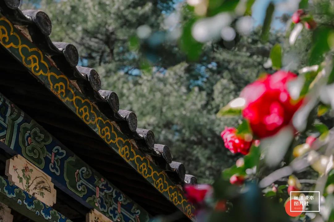 玉峰寺的万朵山茶不像玫瑰红得艳俗,也不像牡丹红得庄重,它的红花更像和煦的春风、温暖的春阳,红得十分清新和自然,让人想要亲近。