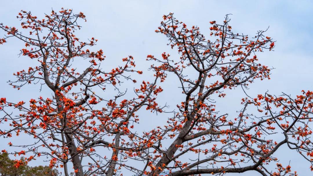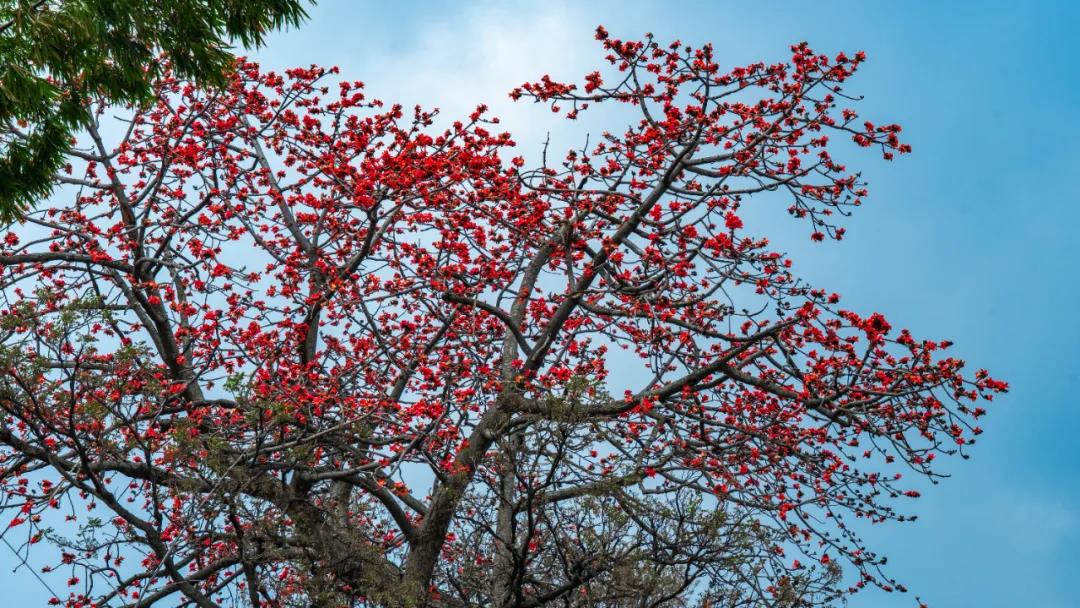 攀枝花盛开时,没有绿叶衬托,也没有含苞待放的羞涩,大朵大朵的红艳动人,畅游树下,可感受到浓浓的春天气息。