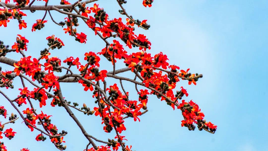 木棉枝头说花语,鸟儿穿梭春意浓。又到一年攀枝花盛开时,血红的攀枝花点缀在金沙江畔、田园村庄和街道路旁,它们是报春的火苗,染靓了季节,更鼓舞着人们满怀希望地迎接新的一年!