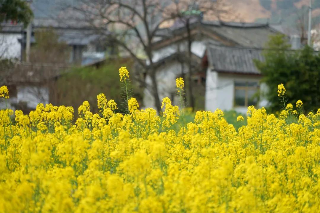 它从零落的瓦檐屋顶探出脑袋,在斑驳陆离的墙壁依附攀爬,甚至随意地铺洒在脚边、田间地头,石鼓的春天,是不经意的惊喜,是随意洒脱的释放……