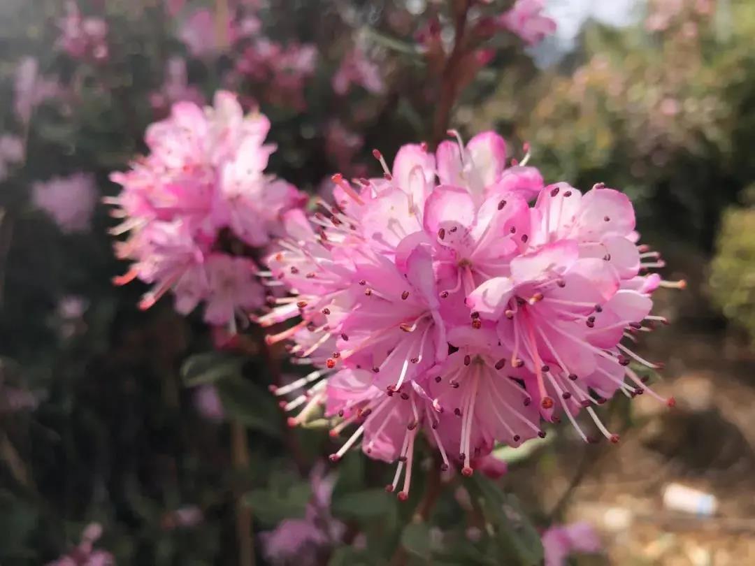 红色的杜鹃绽放得热烈奔放,一簇簇,一团团,红彤彤的一片,如跃动的火焰;白色的杜鹃雅致高贵,把枝头装扮得一片雪白;粉色的杜鹃,美如佳黛,让人感到一种别样的生机。红、白、粉等主色调,把山梁点缀得分外妖娆,彰显出一派春的气息。