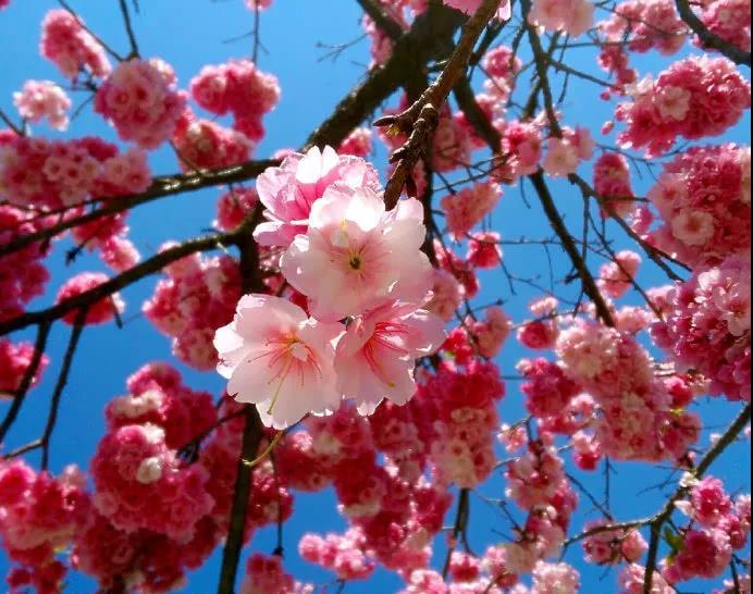 3月的丽江,天气凉凉爽爽的,听着民间小调,行走在樱花大道,道路两旁整齐的樱花树,一眼望去竟望不到头,微风吹来,樱花不时掉下,落在身上,像掉在了心头,竟不舍拂去,爱死了形似这片偶像剧的场景了。满树的粉色的鲜艳的樱花,我就这样走进了粉色的世界,粉粉嫩嫩,独枝当空挂。
