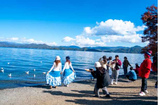 初冬时节,高原明珠泸沽湖天宇澄明,湖水澄澈蔚蓝。连日来,红嘴鸥的“先头部队”跨越千山万水,如约飞抵泸沽湖。这些白色精灵的到来,为静谧的湖山增添了灵动的生机,也标志着“冬游丽江”观鸥季正式开启。