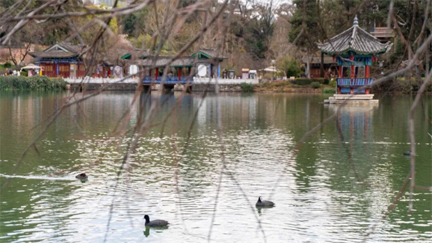 黑龙潭的五孔桥、得月楼、象山与远处玉龙雪山,视野开阔,心境也随之悠然。